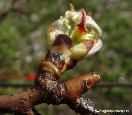Kruška se nalazi u fazi pucanja cvetnih pupoljaka. Počelo je piljenje larvi kruškine buve, a i dalje je prisutno polaganje jaja. Preporuka je da se narednih dana uradi suzbijanje sa:....